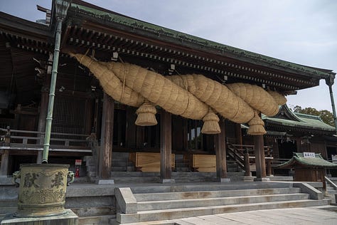 That's a really huge shimenawa! I hope to enjoy hanami someday in Japan, just sitting in the park, relaxing and taking in the view 😌