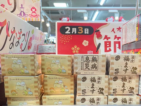 These are all preparations for 節分 (Setsubun) — the ritual of the seasonal divide, held on February 3rd. Setsubun literally means “dividing the seasons” and refers to the day before 立春 (Risshun) — the beginning of spring. In the ancient lunar calendar, this day was the equivalent of New Year’s Eve, a significant spiritual turning point marking the end of the year.