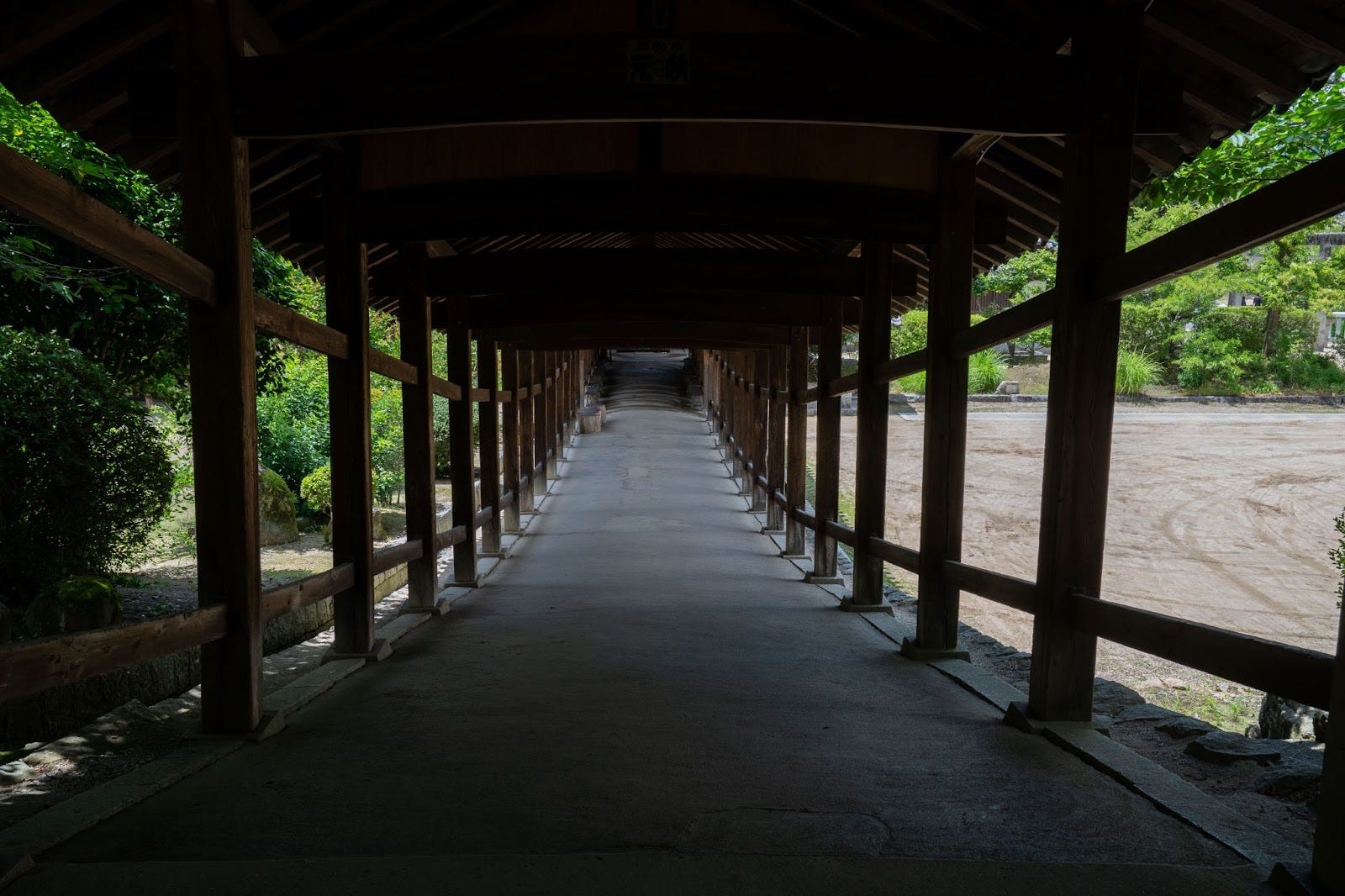 Only footsteps echo in this quiet corridor, creating an atmosphere unique to sacred grounds.