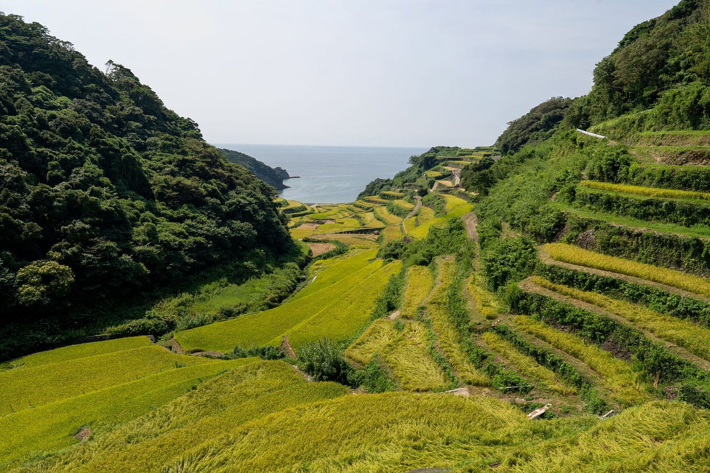 Terraced fields are a form of traditional Japanese agriculture developed to grow rice in mountainous regions with little flat land. Although less efficient than farming on flat plains, they embody generations of wisdom that balanced human life with nature.
