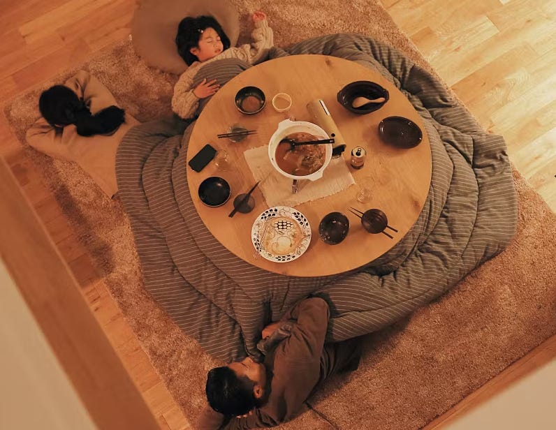 When people think of Japanese winter, many picture the kotatsu—a heated table covered by a quilt, unique to Japan.