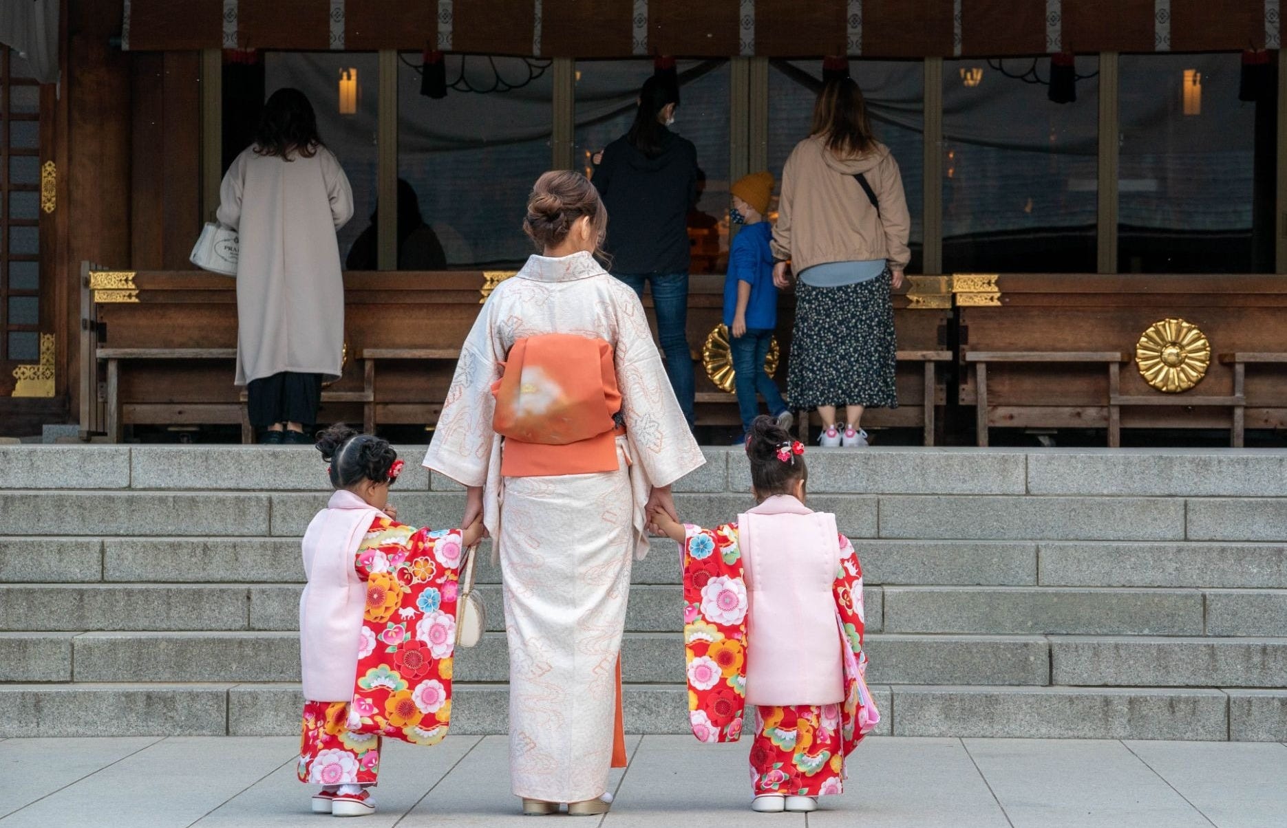In November, it’s common to see families at shrines with children dressed in colorful kimono.