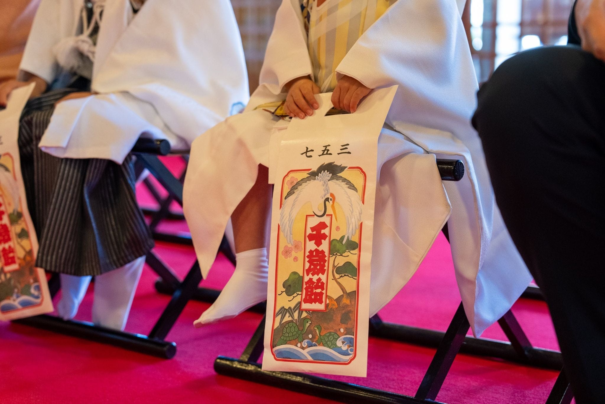 A familiar symbol of Shichi-Go-San is Chitose-ame, long red-and-white candy sticks that represent wishes for a long and happy life.