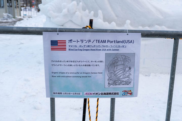 2026国際雪像コンクール ( 2026 International Snow Sculpture Contest) Ten teams from around the world gather to compete and foster international friendship. Featured here is the completed work by the team from Portland, Oregon.
