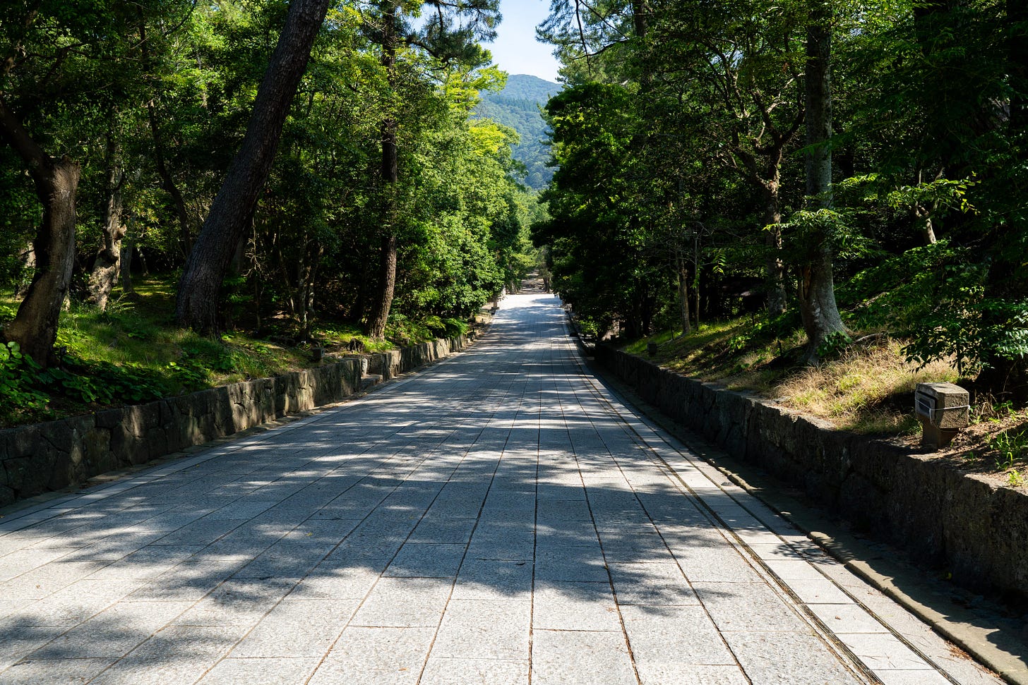 Visitors walk along the right side of the path, in contrast to the left-side convention at most shrines.