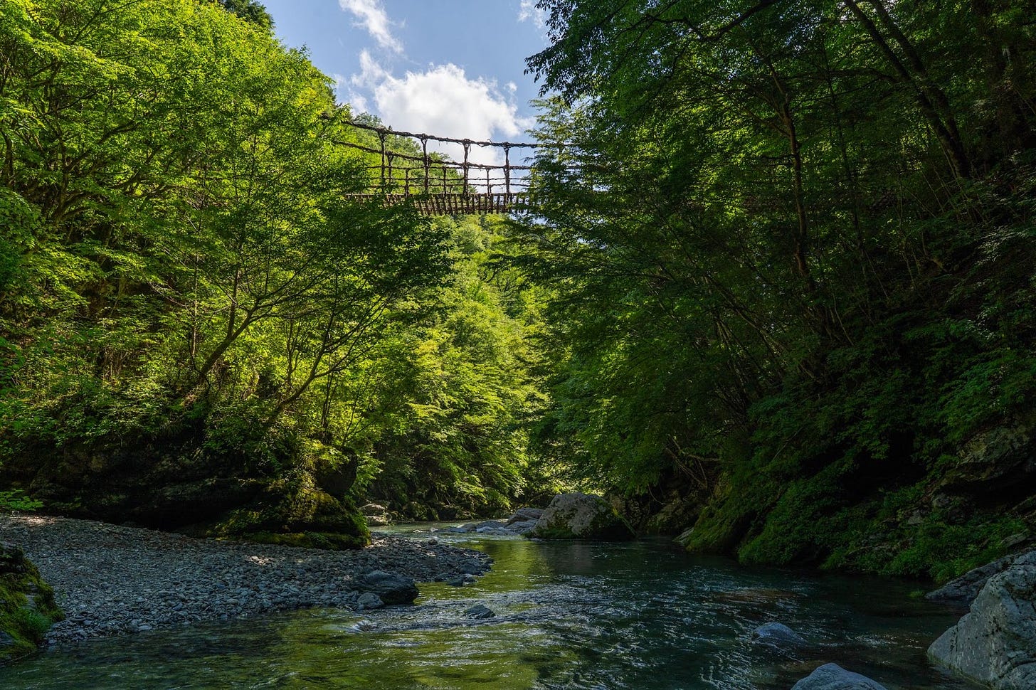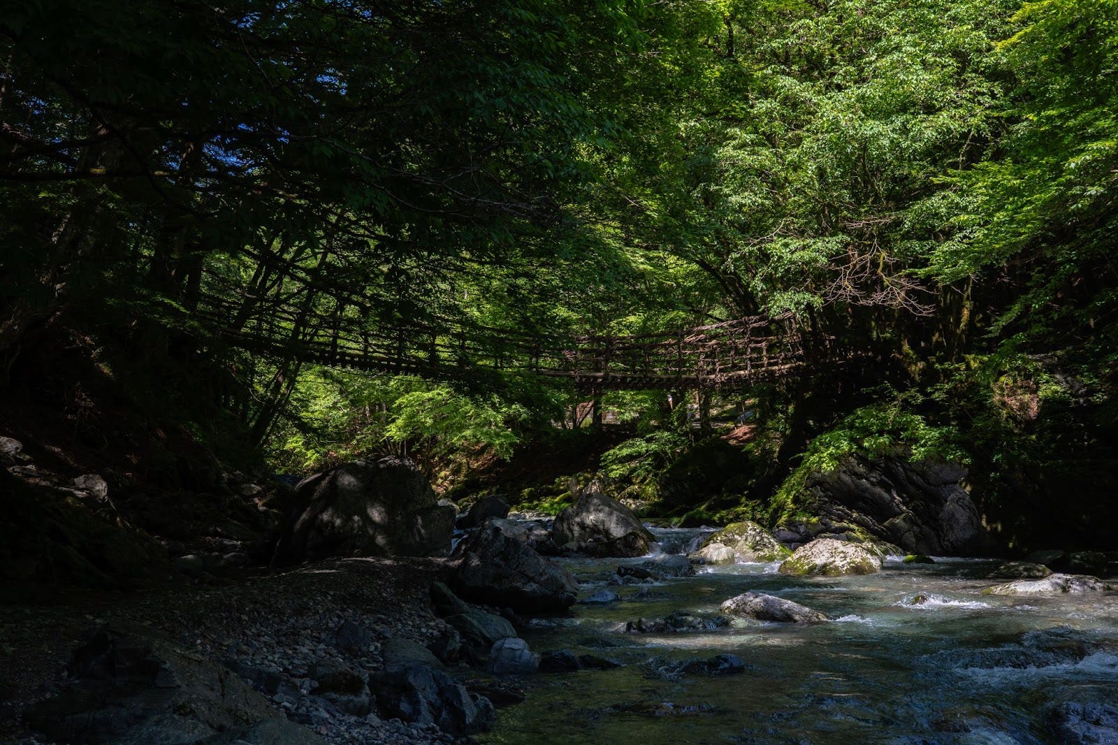 Beneath the bridges flows the crystal-clear waters of the Iya River, surrounded by untouched nature.