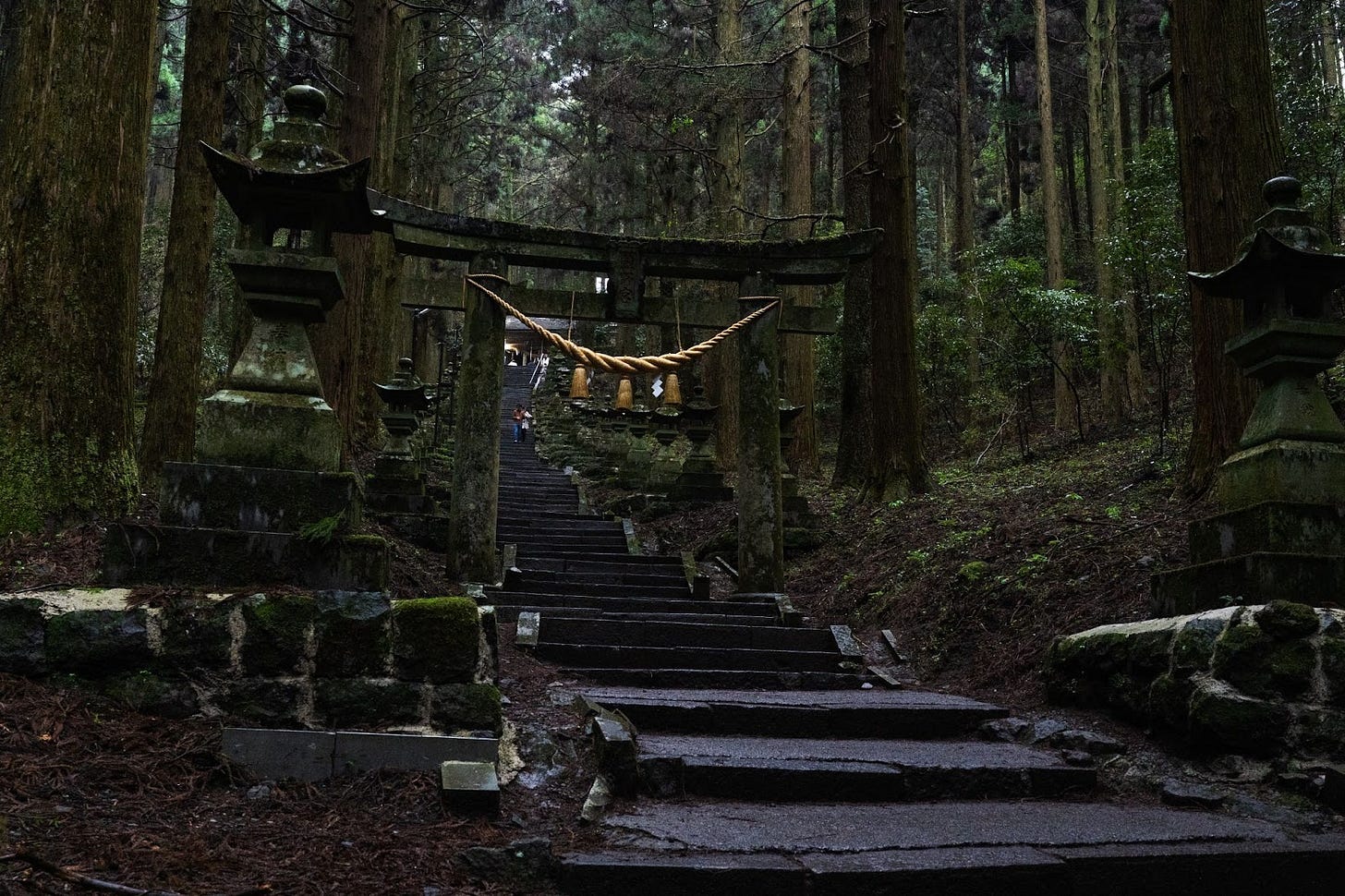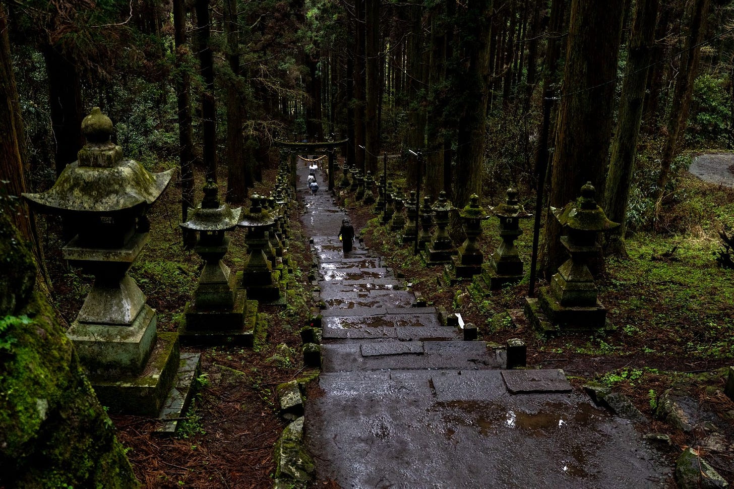 Roughly 100 moss-covered stone lanterns lined the path ahead. Towering cedar trees stood motionless on either side. The only sounds were the wind moving between the trunks, and the soft, rhythmic sound of my own footsteps. Walking this path felt, somehow, like a prayer.
