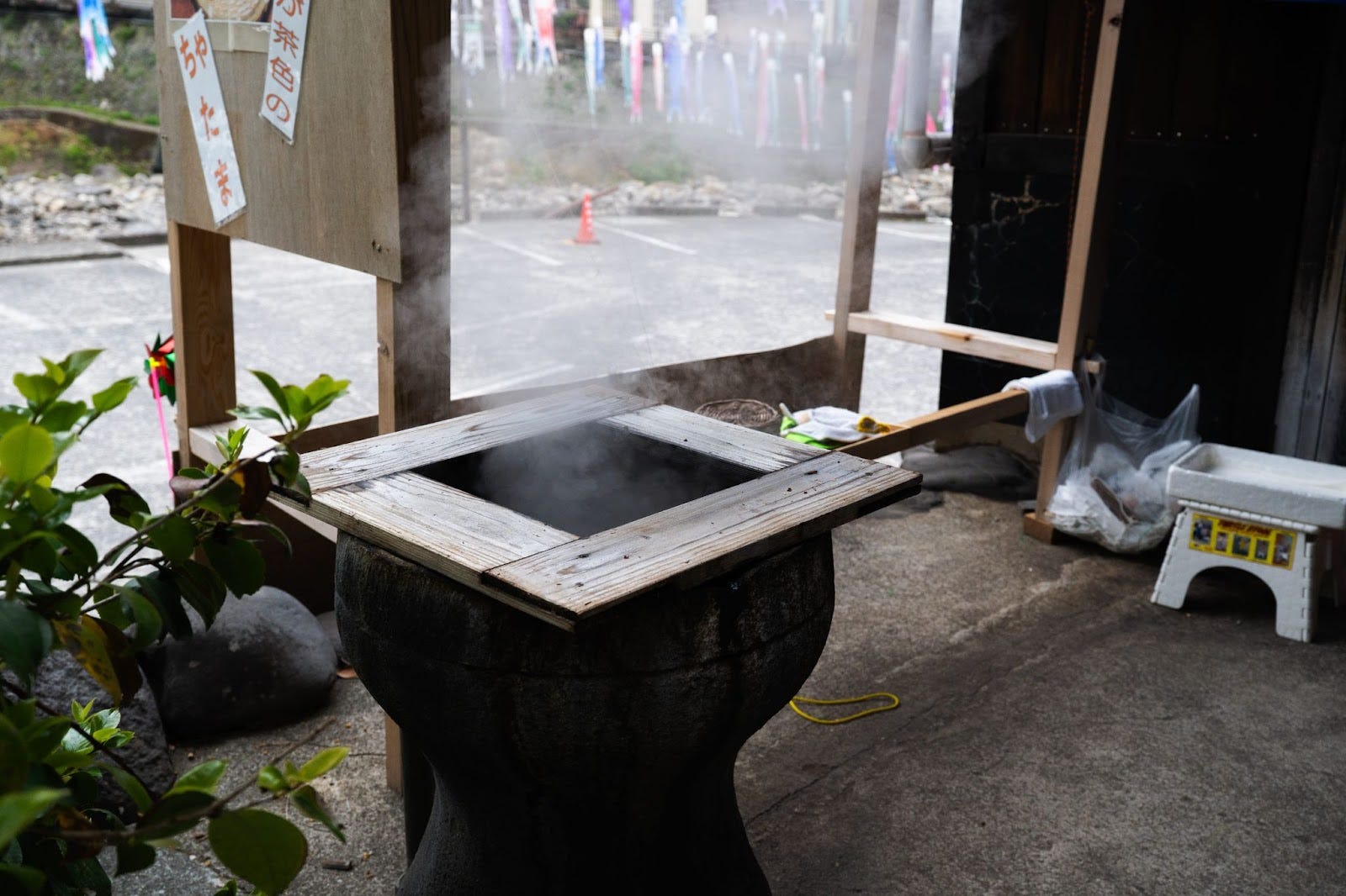 The first time I visited Tsuetate, what struck me most was the sweeping sight of carp streamers filling the river. Their bright colors swaying in the breeze felt far more vivid and awe‑inspiring in person than any photo could capture. Walking through the narrow alleys where steam rose gently, the town evoked a nostalgic atmosphere—as if time itself had slipped backward. At one of the steaming areas, a local grandmother was quietly steaming vegetables. This fusion of daily life and hot spring culture felt beautiful in a way that transcended tourism and expressed the community’s daily rhythm.