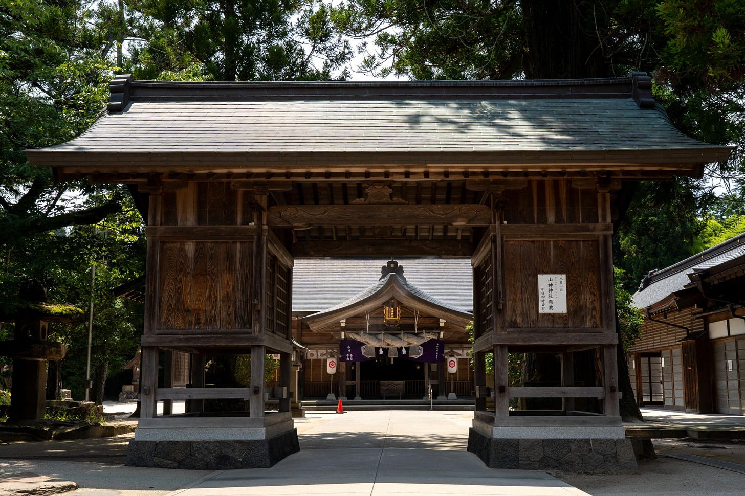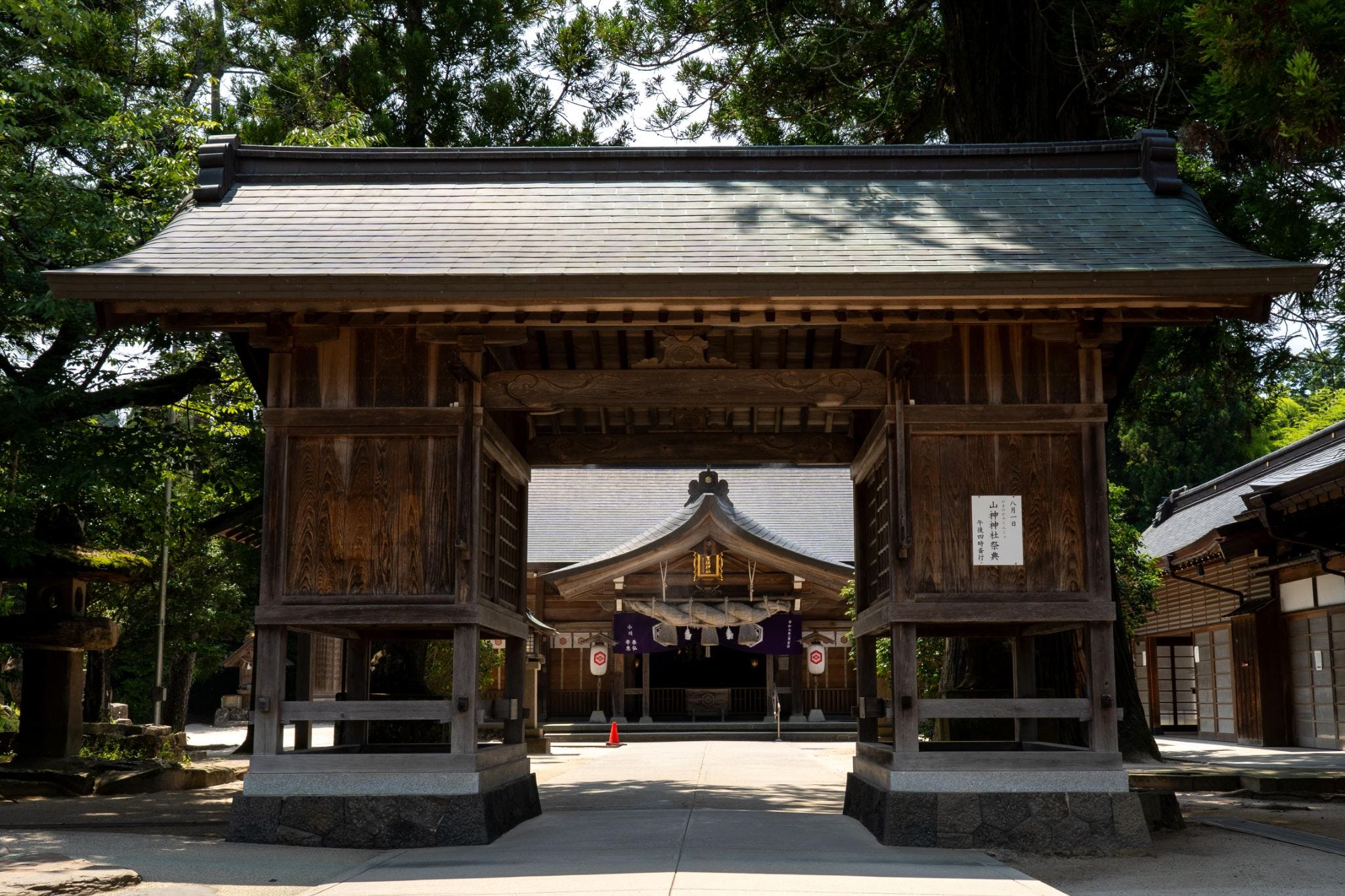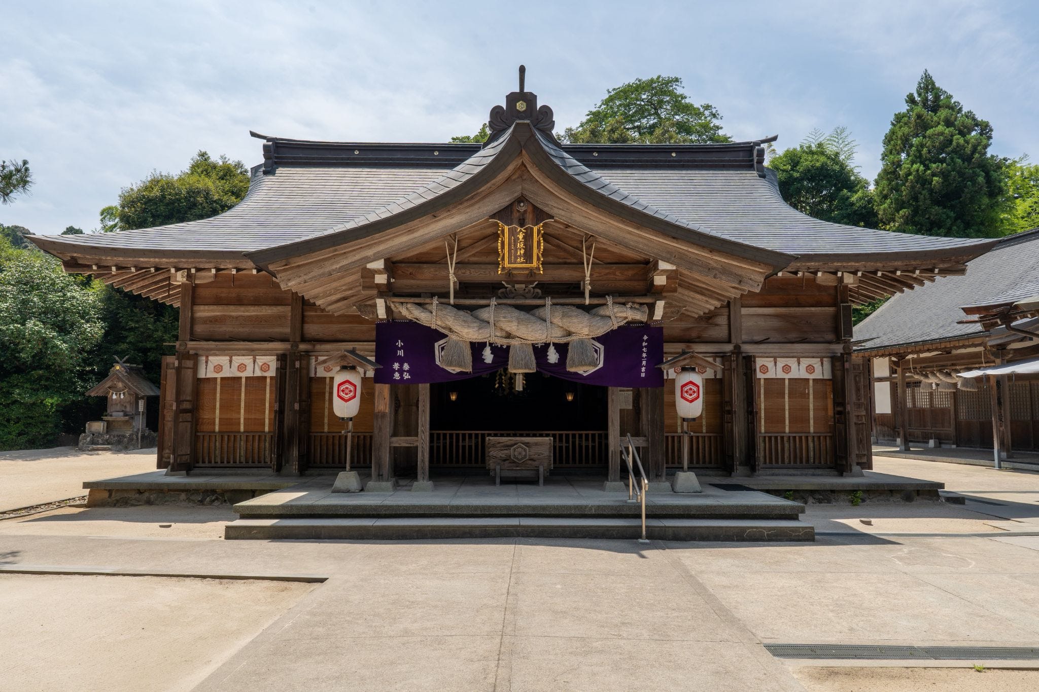Walking through the grounds, the first sight to capture the eye is the Main Hall in the “Taisha-zukuri” style, characteristic of the Izumo region. Its dignified form conveys the weight of centuries of history. Within the Main Hall are late-Heian period painted wooden images, among the oldest shrine wall paintings in Japan, now designated as Important Cultural Properties of Japan. Their preservation testifies to the great reverence this shrine has received across the ages.