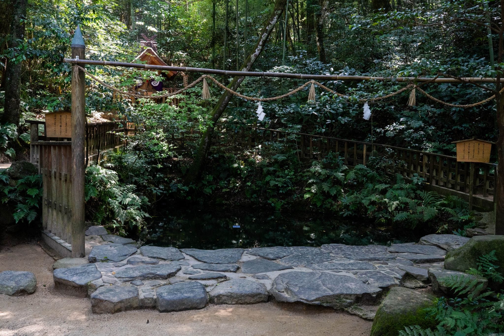 No visit to Yaegaki Shrine is complete without the Kagami-no-Ike (Mirror Pond) at its inner sanctuary. According to legend, Inata-hime gazed at her reflection here and purified herself. Today, it remains one of the most famous sites for divining one’s future connection.